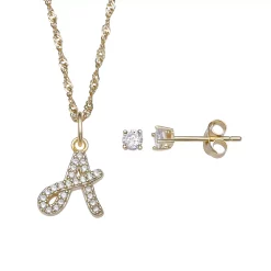 LC Lauren Conrad Sterling Silver Cubic Zirconia Stud Earrings & Initial Pendant Necklace Set