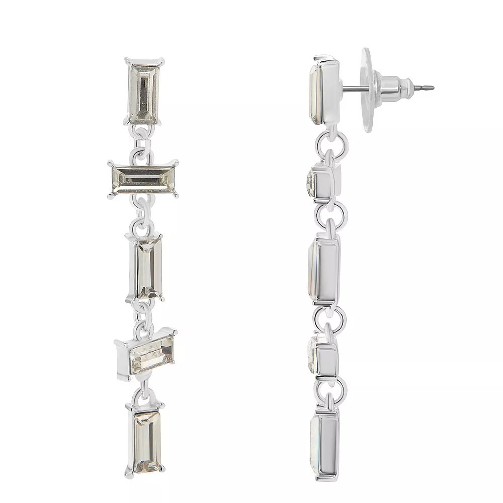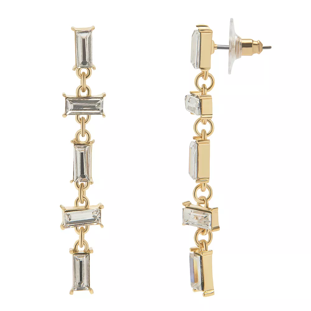 Finish off your look in eye-catching style with these crystal baguette linear drop earrings from LC Lauren Conrad.