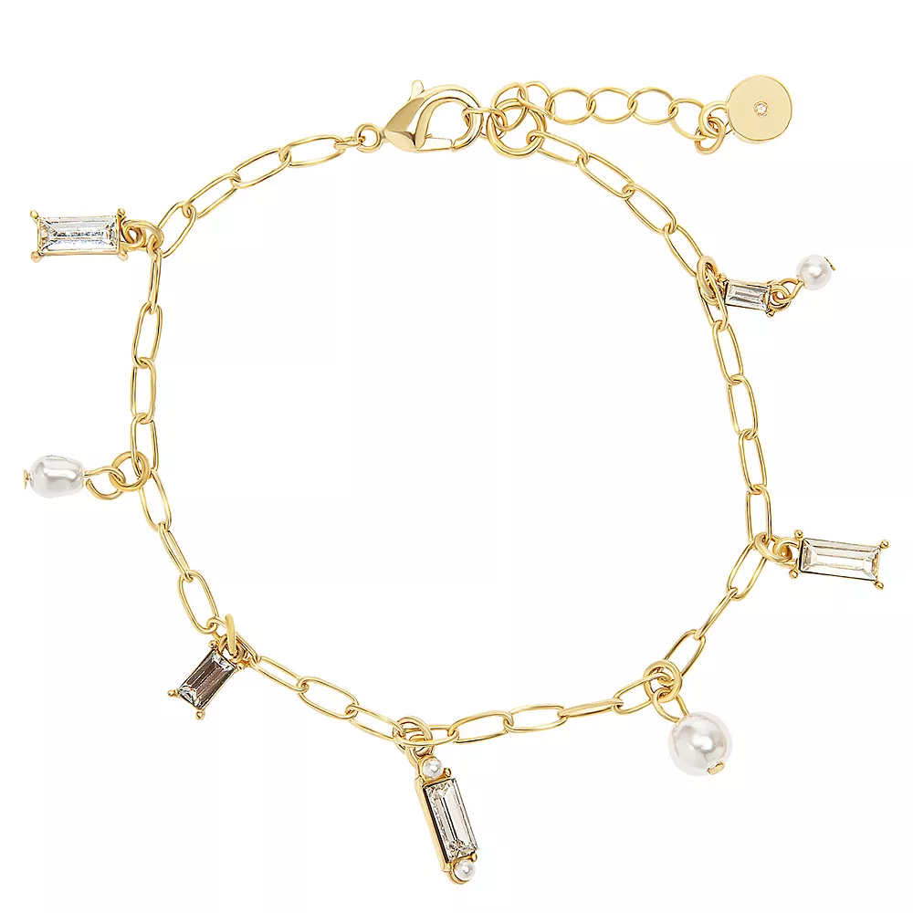 This LC Lauren Conrad Gold Tone Baguette Stones and Simulated Pearl Charm Bracelet is so lovely you will want to wear it every day.