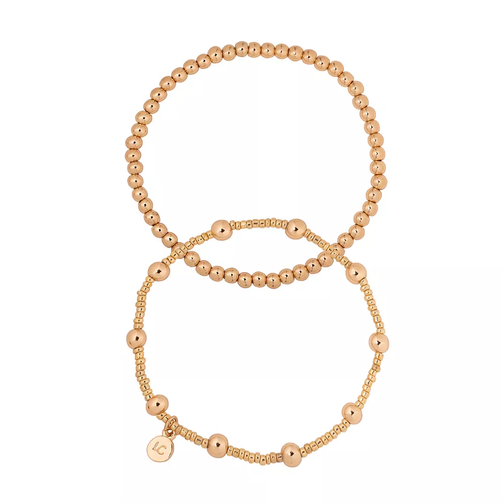 Wear this cute LC Lauren Conrad Gold Tone Clean Metal Ball Nickel Free Stretch Bracelet Set together or separately.
