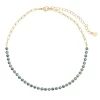 Add a pop of color to any ensemble with this eye-catching gold tone, green crystal choker length tennis necklace from LC Lauren Conrad.