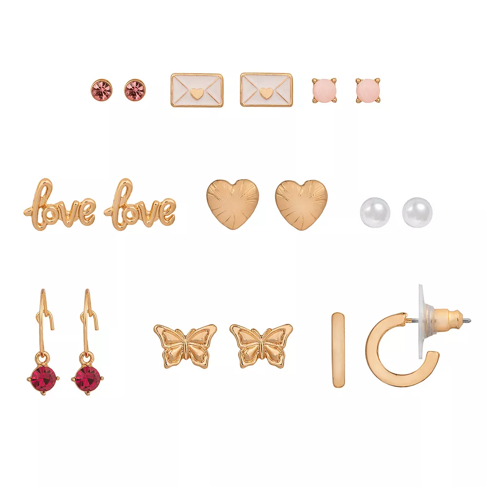 Deliver adorable beauty with this LC Lauren Conrad Gold Tone Love Letter Nickel Free Earring Set.
