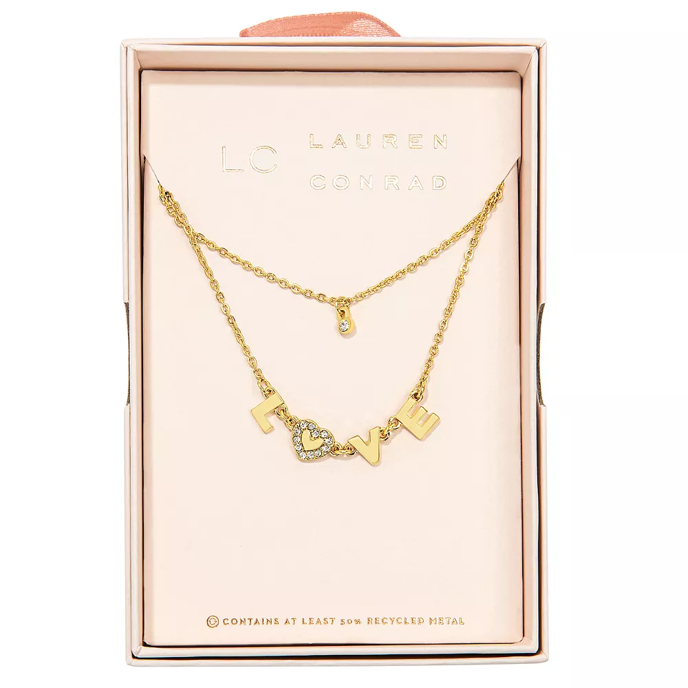Spell out how you feel with this LC Lauren Conrad Gold Tone Love Pendant Necklace.