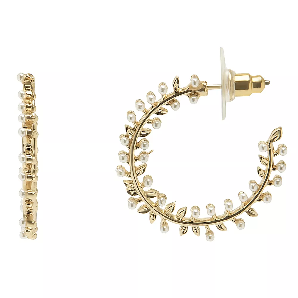These LC Lauren Conrad Gold Tone Medium Hoops with Simulated Pearl Accents add texture and beauty to your collection.