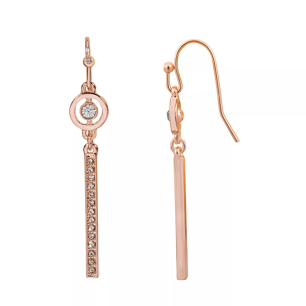 You will love the elegant design of these LC Lauren Conrad halo crystal and pave bar drop earrings.