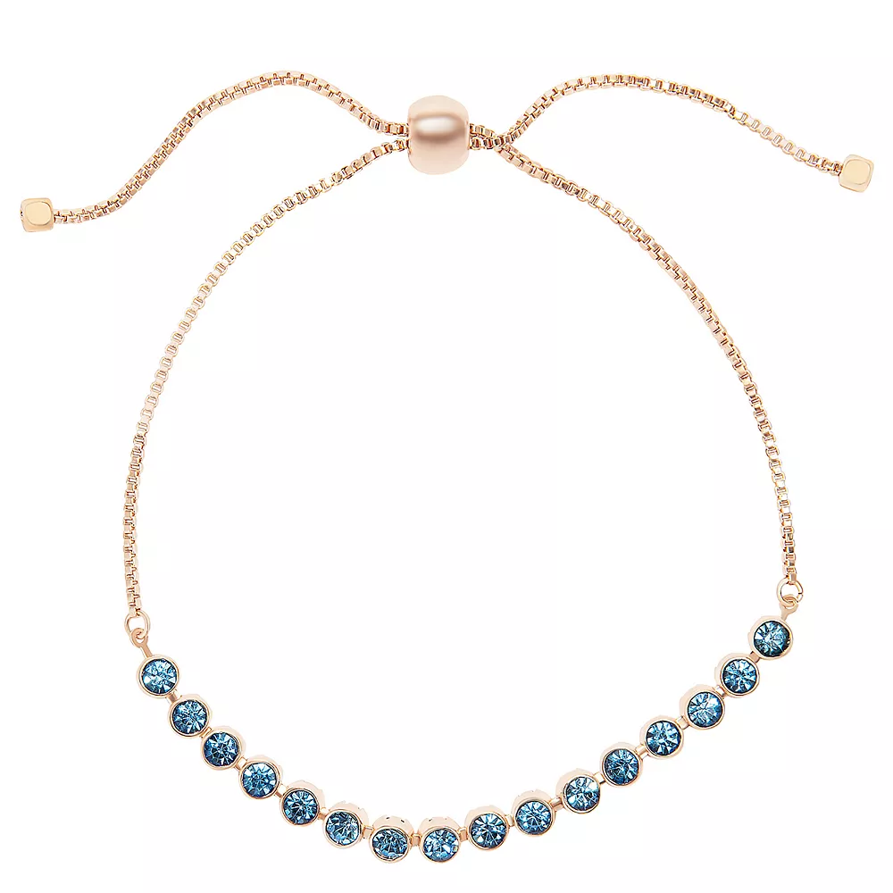 Add a pop of color to any ensemble with this blue crystal rose gold tone bolo tennis bracelet from LC Lauren Conrad.