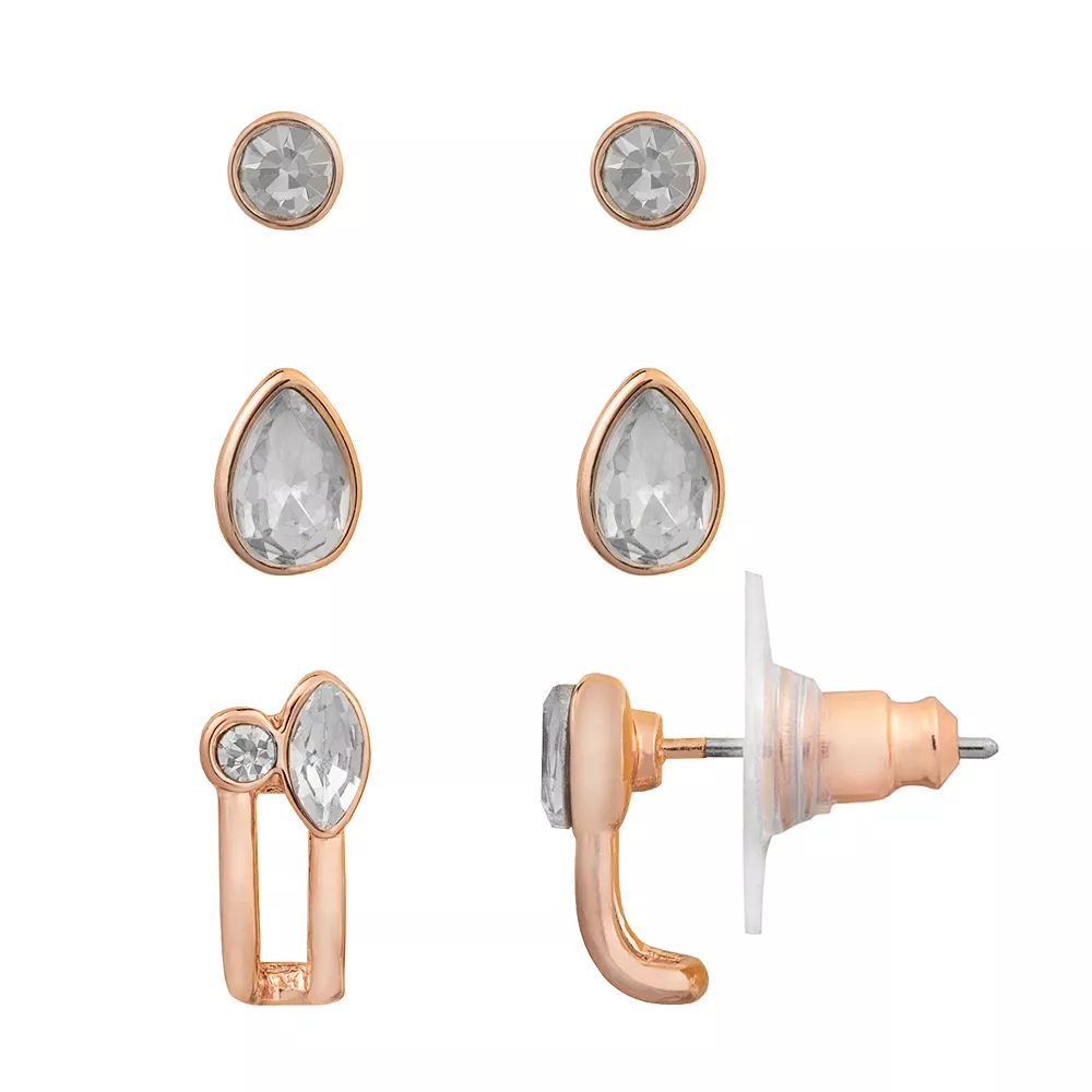 Add a variety of choices to your accessories with this LC Lauren Conrad rose gold tone stud earrings trio set.