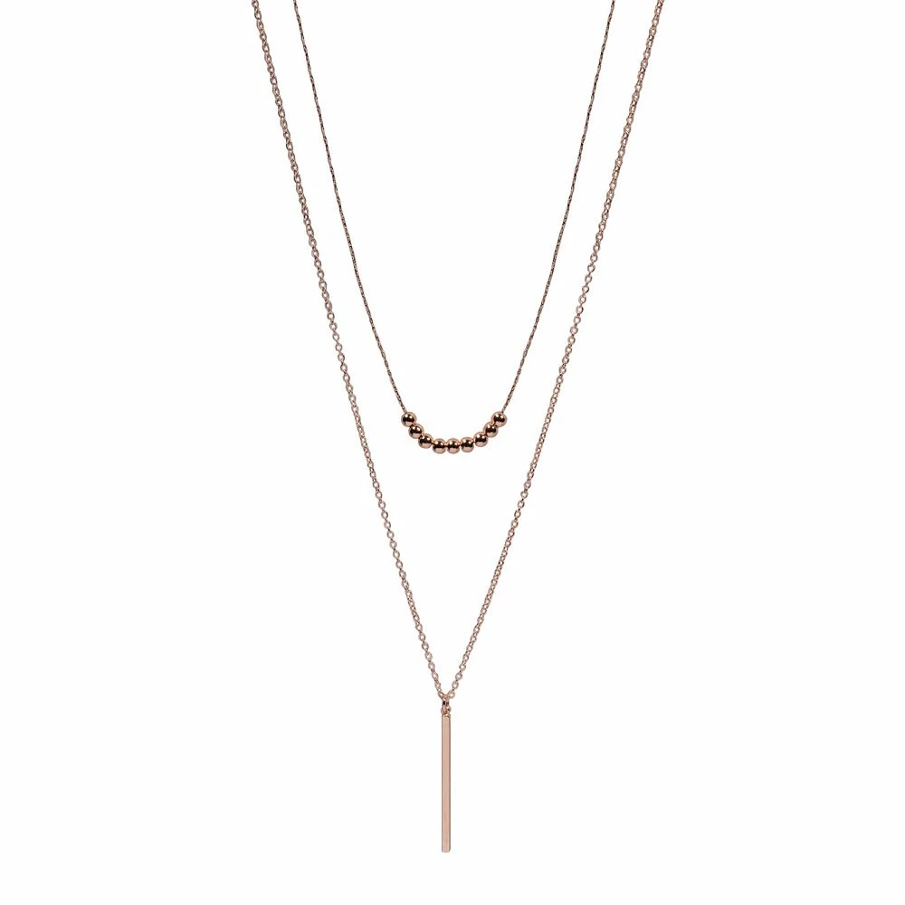 Layer on the class with this LC Lauren Conrad Rose Gold Tone Two Row Metal Ball Bead and Bar Long Nickel Free Pendant Necklace.