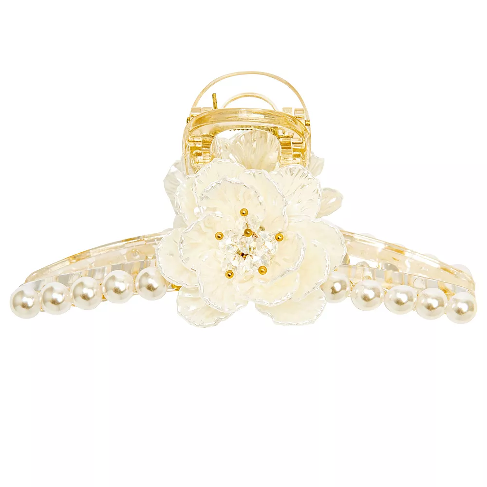 Add whimsy to your look with this LC Lauren Conrad White Acrylic Flower and Simulated Pearl Clear Acetate Claw Clip.