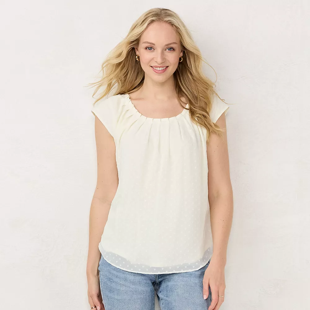 You’ll love the charming style of this petites’ pleated top by LC Lauren Conrad.