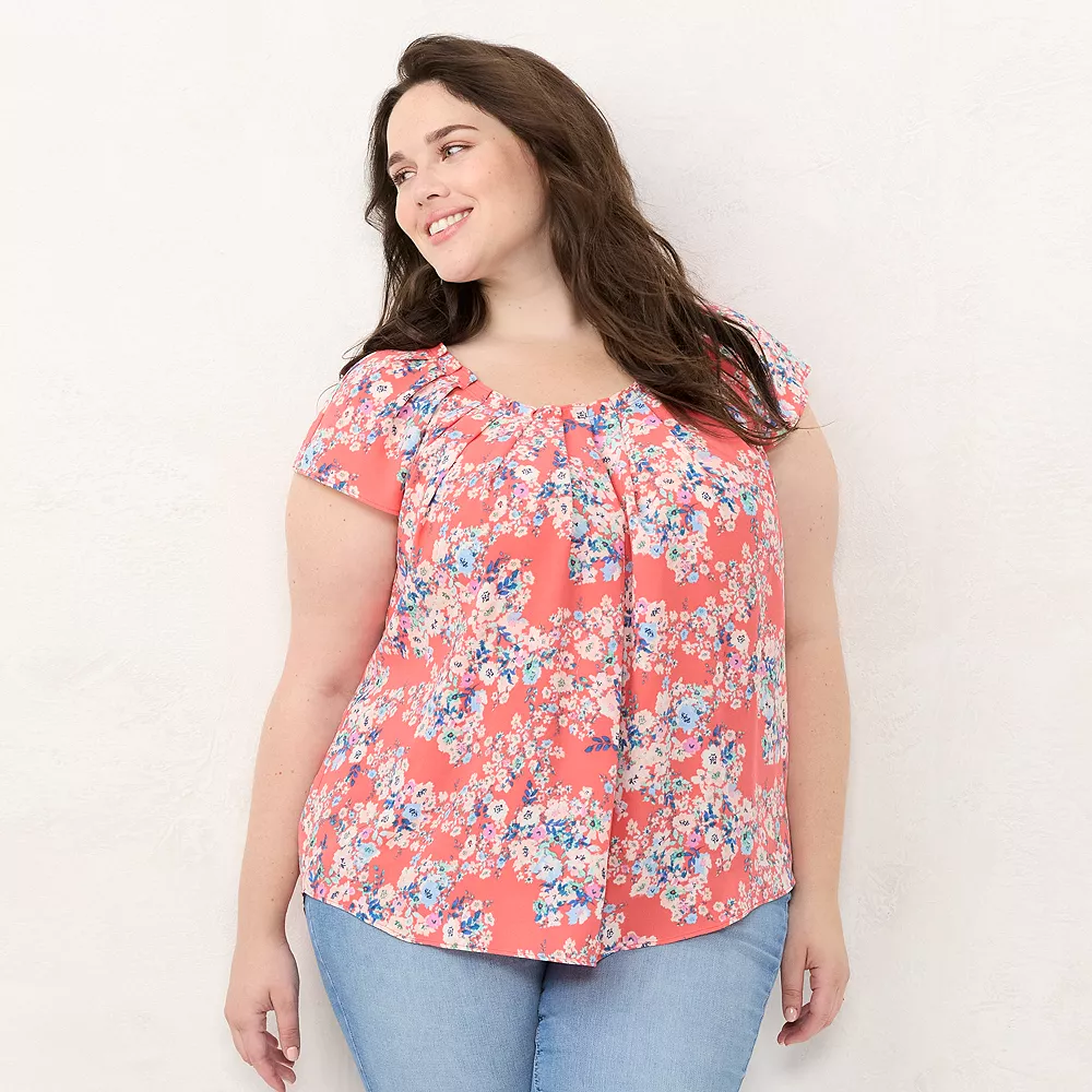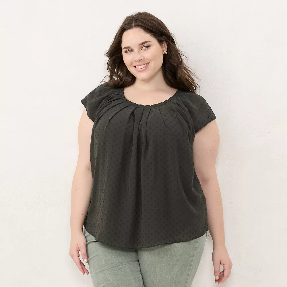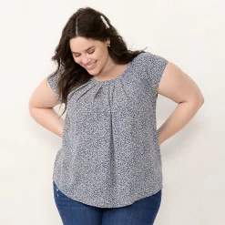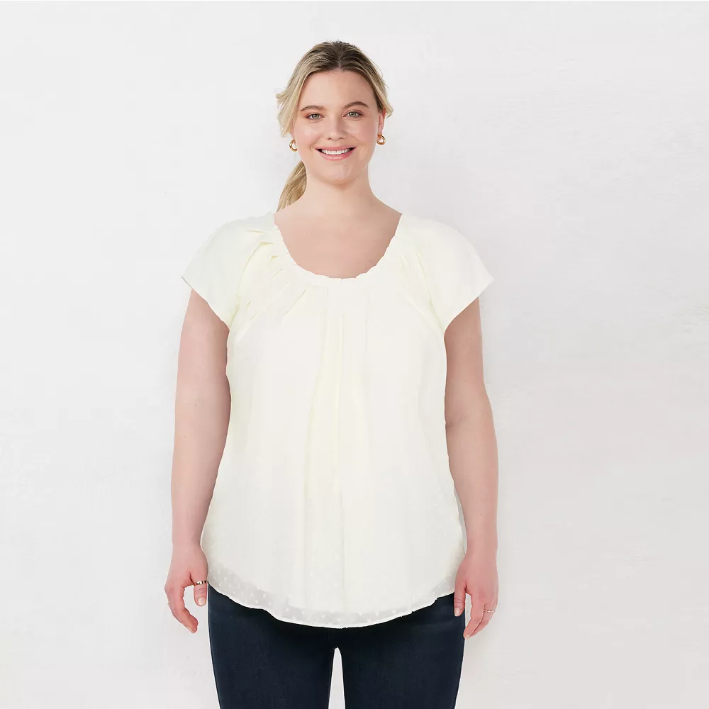 Upgrade your casual basics with this women’s plus size pleated top from LC Lauren Conrad.