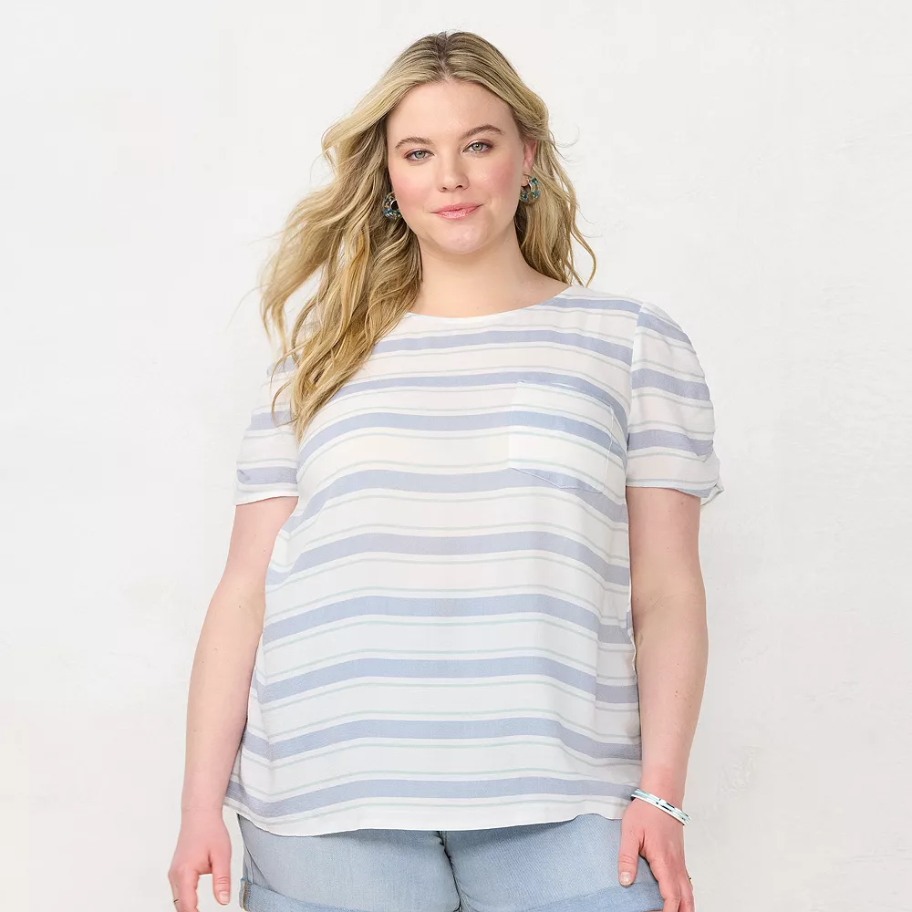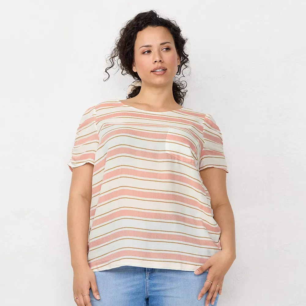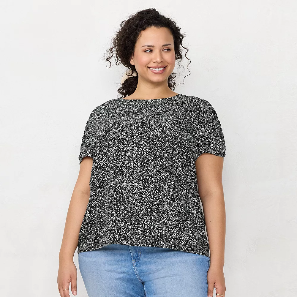 Enjoy a unique spring look with this women’s rumpled short sleeve tee from LC Lauren Conrad.