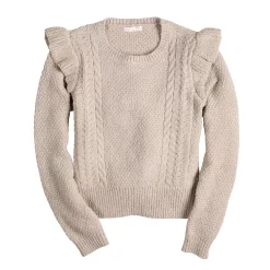 The design is in the details! You’ll welcome cold weather in this charming women’s LC Lauren Conrad sweater, featuring sparkling thread, ruffles at the shoulders and cable-knit accents.