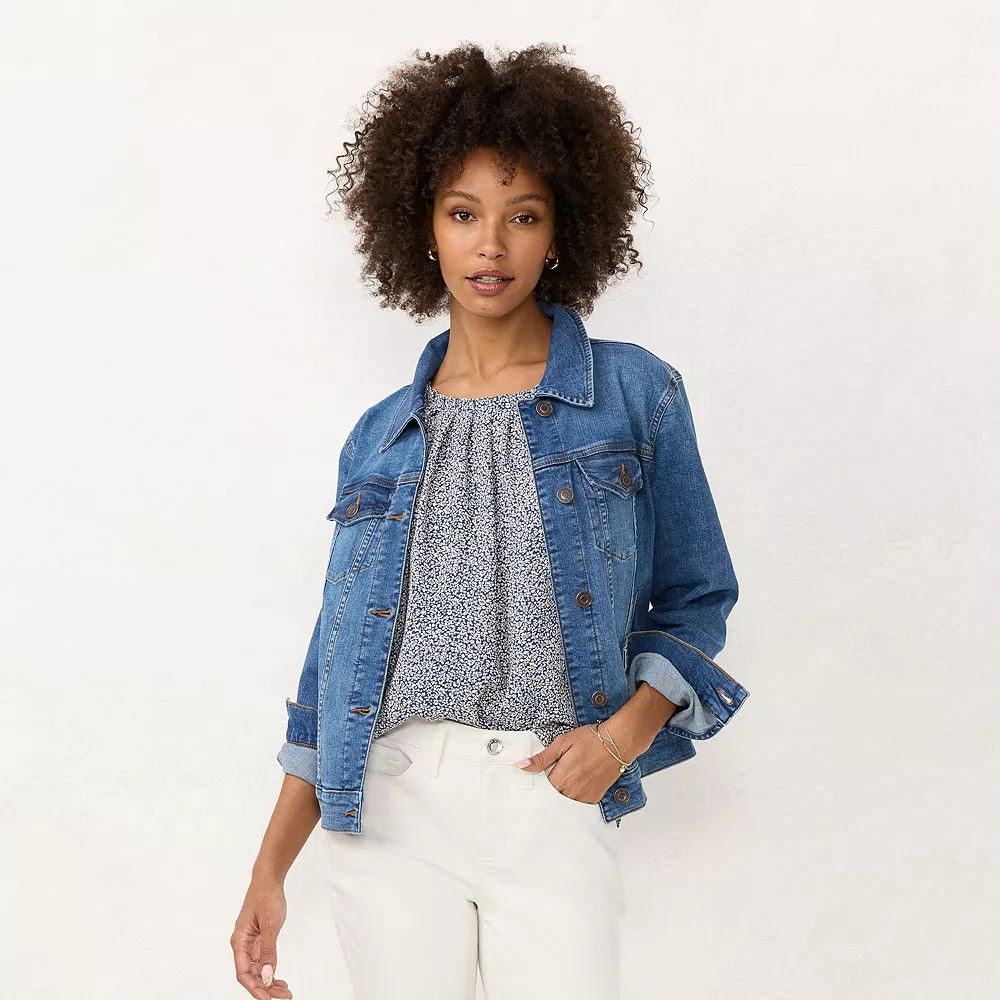 So versatile, this women’s LC Lauren Conrad jean jacket will be a staple in your casual wardrobe.