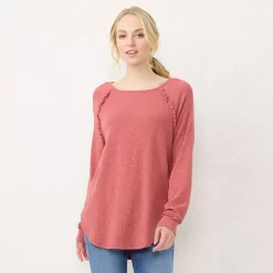 You’ll be cute and cozy in this women’s ruffle trim tunic by LC Lauren Conrad.