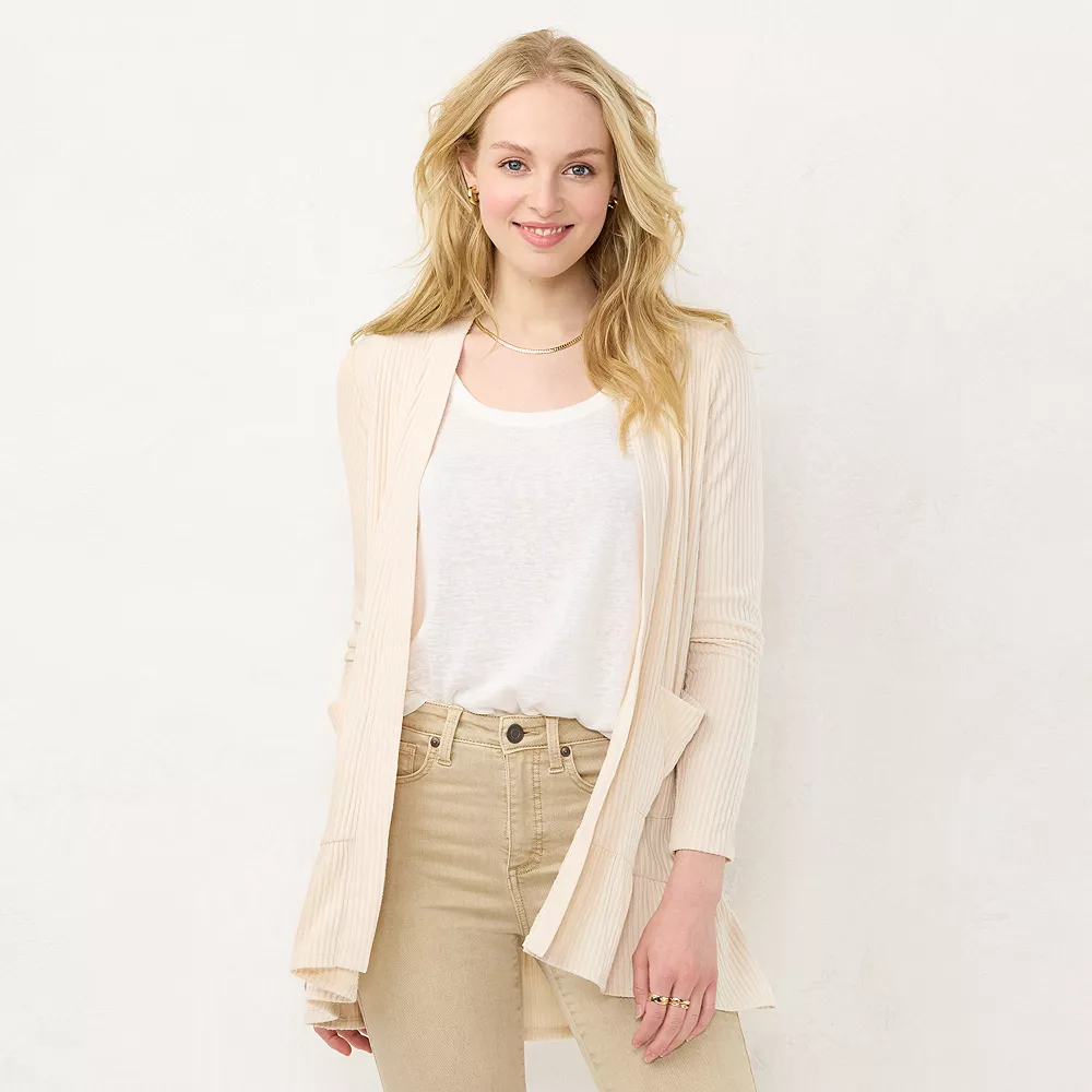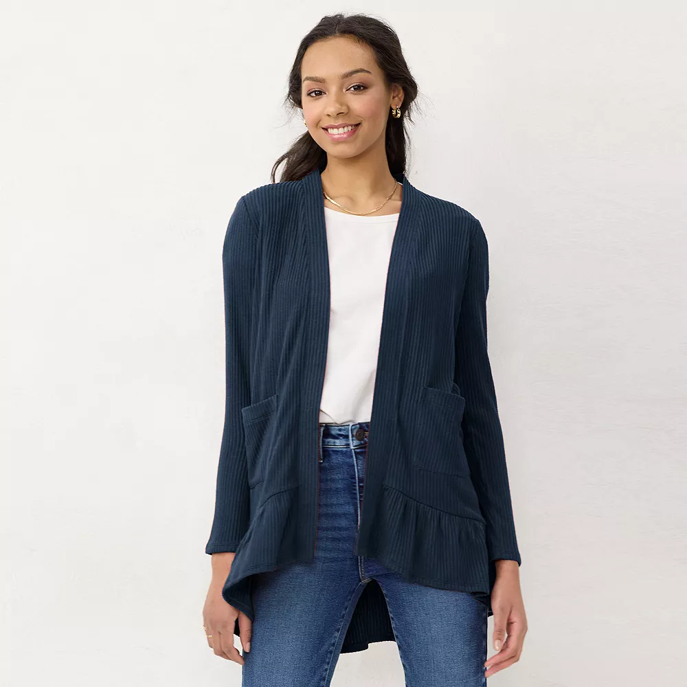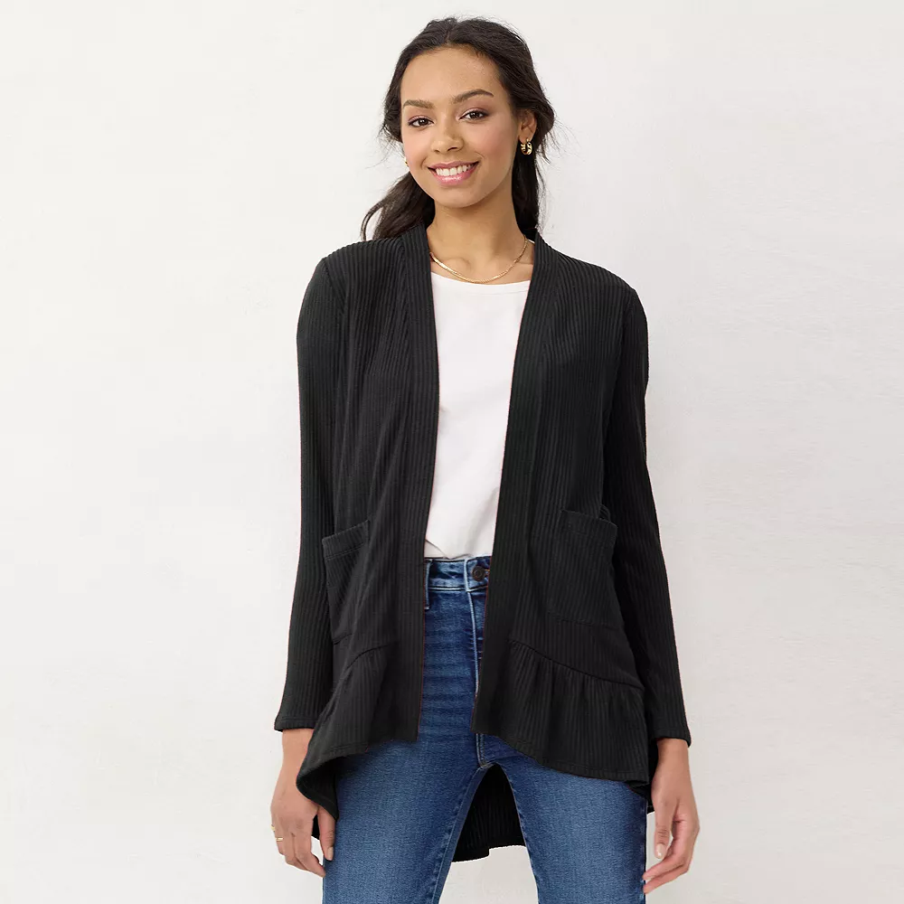 Add a feminine final layer with this women’s open front cardigan from LC Lauren Conrad.