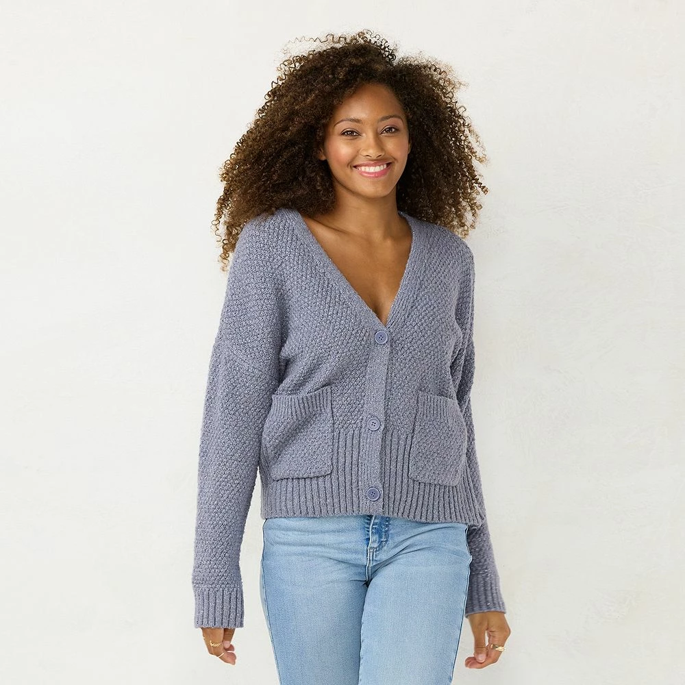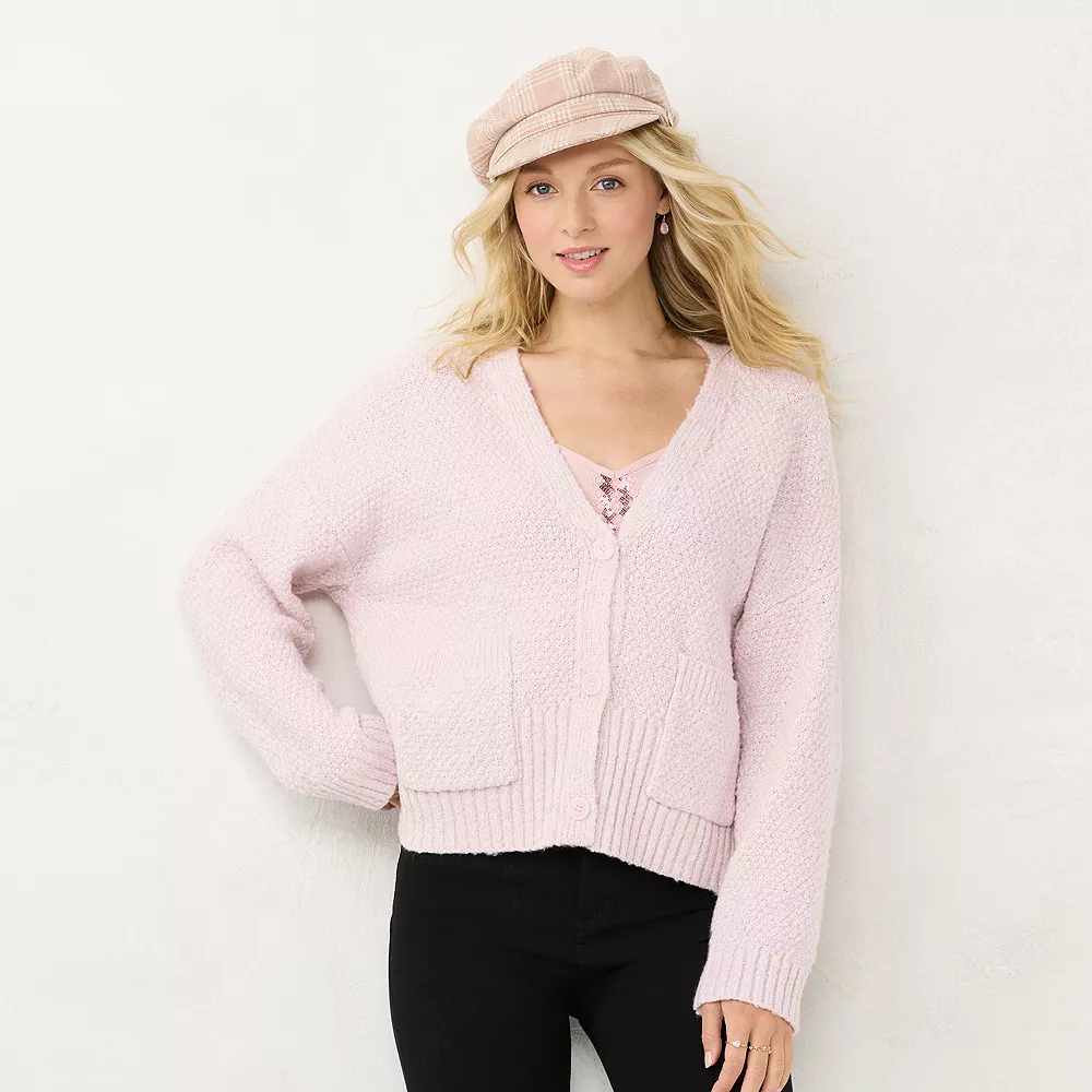 Seed stitching adds sweet style to this women’s LC Lauren Conrad cardigan.
